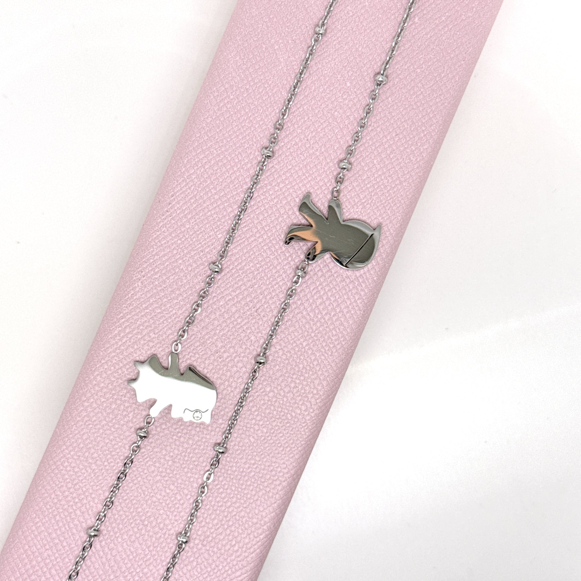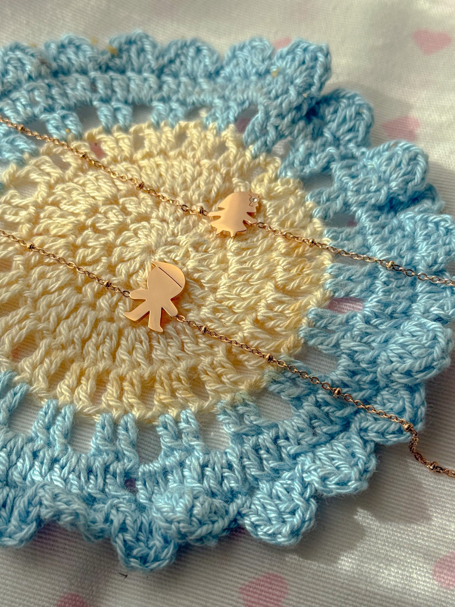 Questo meraviglioso bracciale in acciaio inossidabile con finitura rose’ e silver è il regalo perfetto per i neo-genitori. Personalizzalo con l'iniziale del tuo bambino/a. Il maschietto decorato con il berretto o una femminuccia con zirconi, rende questo bracciale unico e speciale. Personalizza il tuo bracciale con la lettera desiderata.