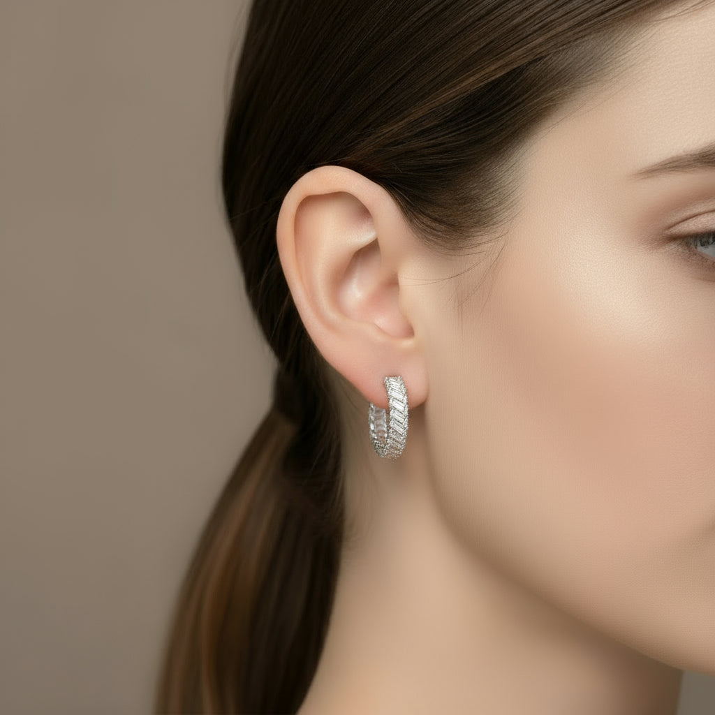 I CERCHIETTI ZIRCONI BAGUETTE da 1cm sono raffinati ed eleganti orecchini in argento con zirconi a forma di baguette. La loro semplicità e la raffinatezza donano brillantezza e luminosità, rendendoli perfetti da indossare tutti i giorni o per occasioni speciali. Prodotto made in Italy, con packaging di alta qualità e spedizione rapida in tutta Italia.