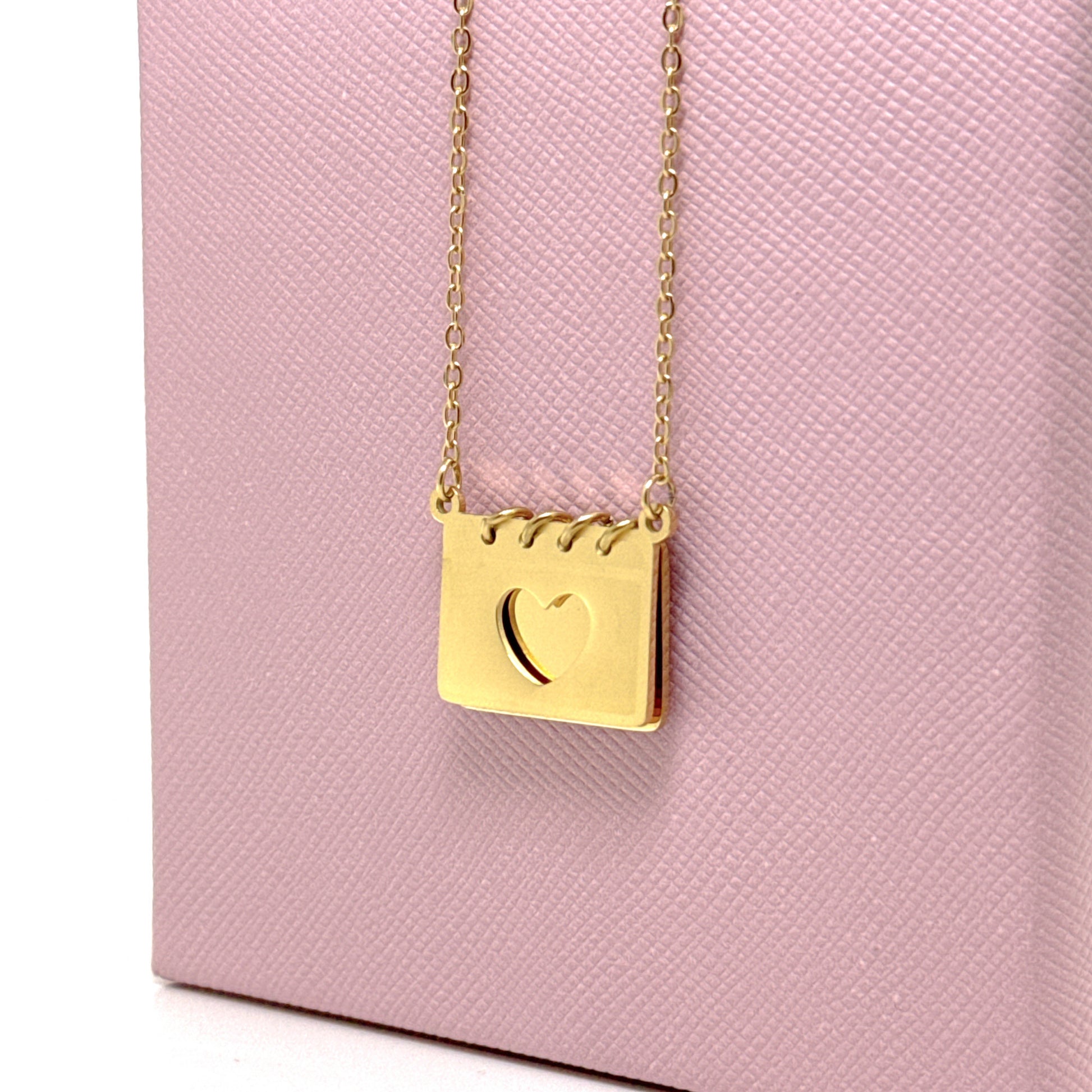 - Un'idea regalo bellissima: la collana con un pendolo a forma di calendario e un cuore traforato.