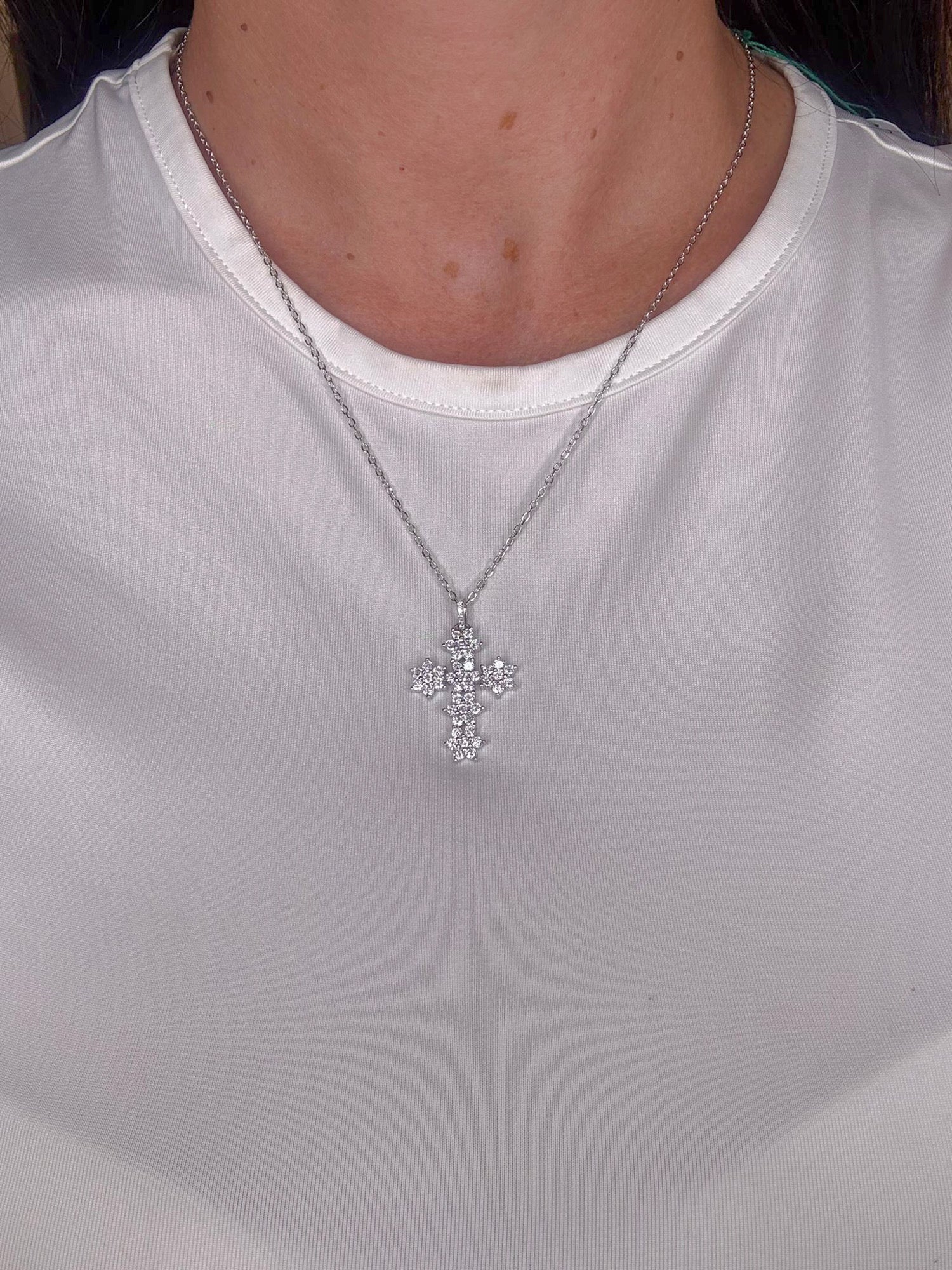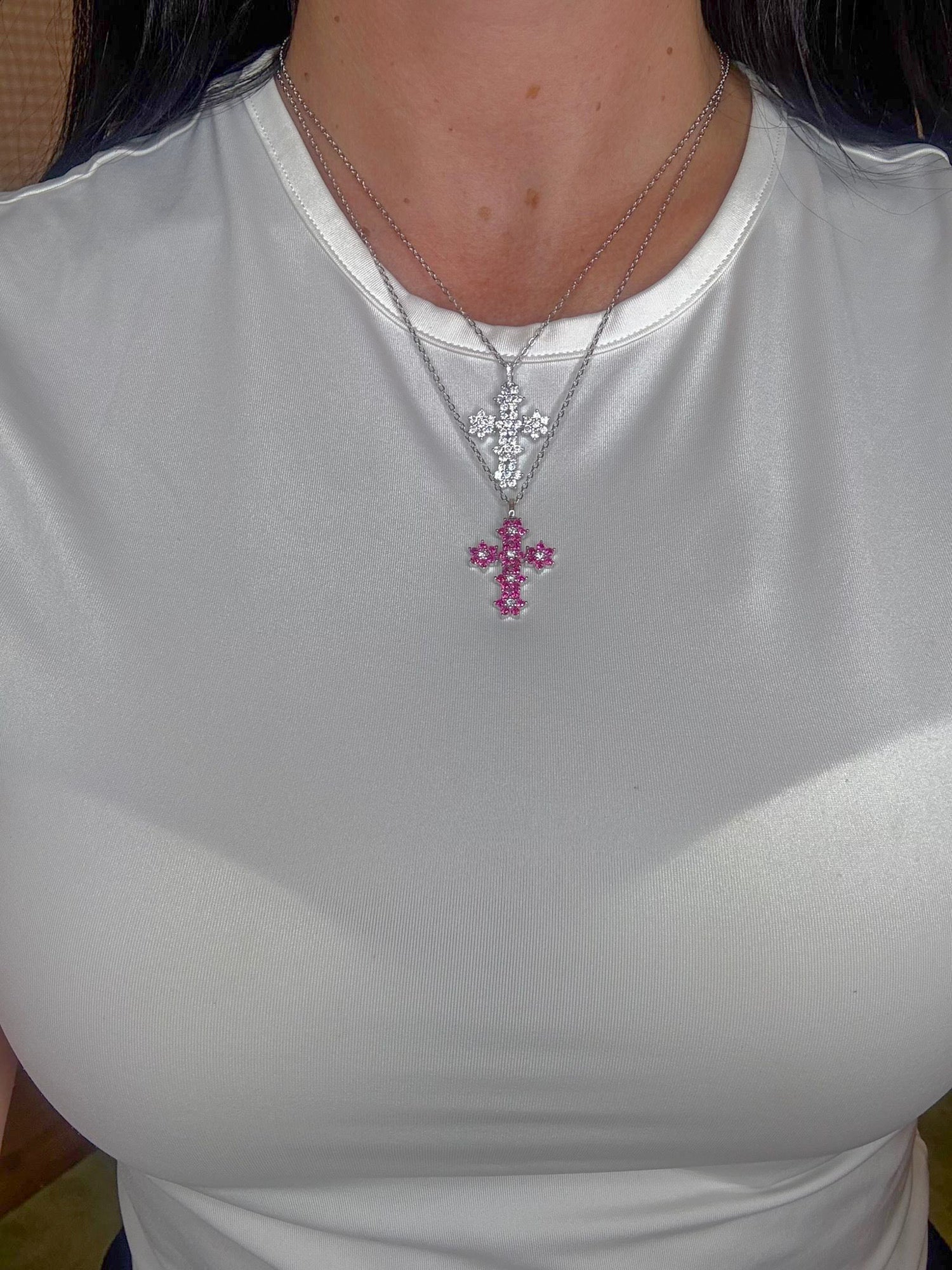Questa collana unica è formata da una croce di fiori con incastonature di zirconi bianchi al centro, disponibile in colori vivaci e basi in argento o oro. Meravigliosa ed elegante, è perfetta per le tue serate speciali. Scopri i benefici di questo pezzo unico e raffinato.