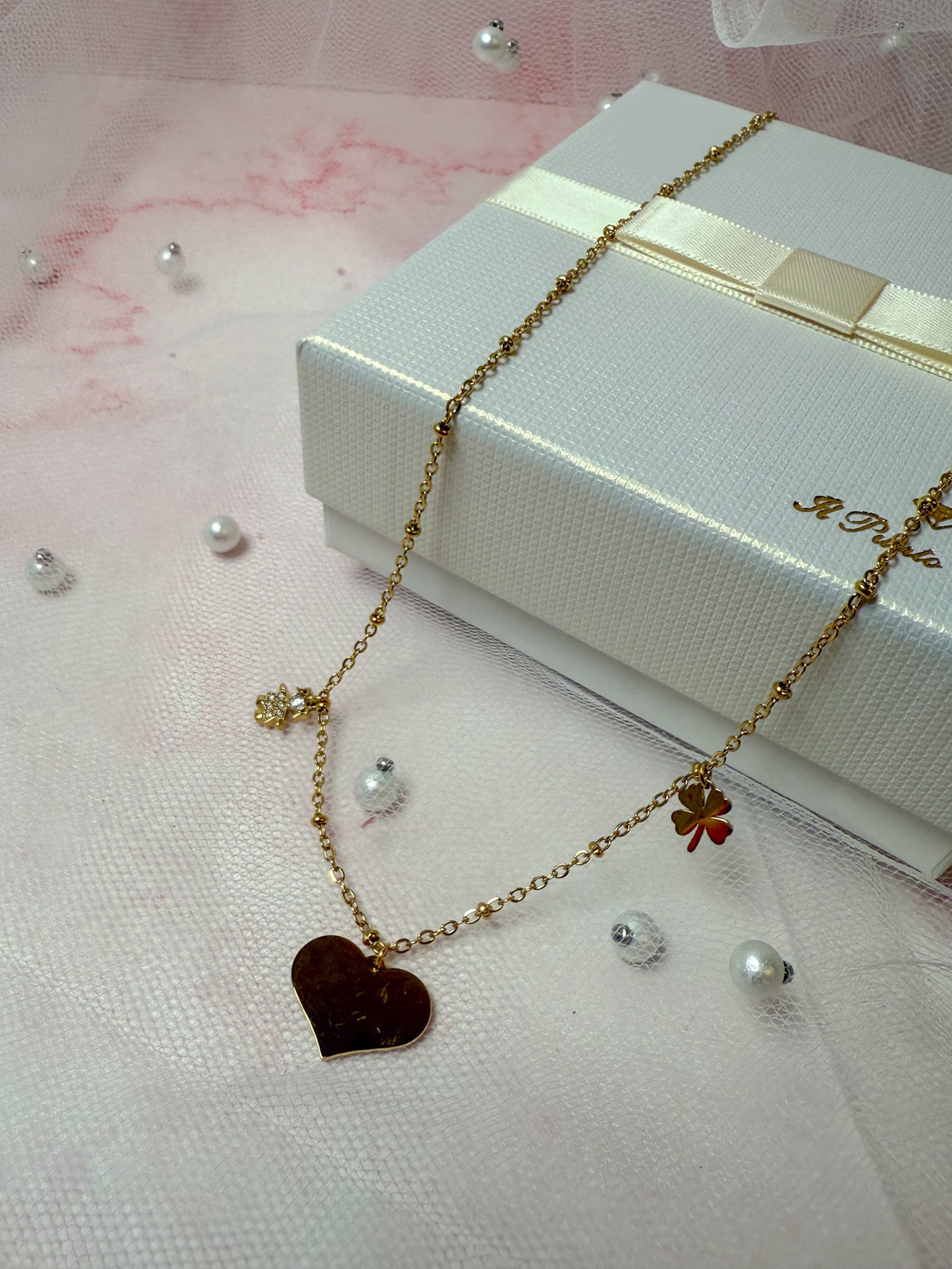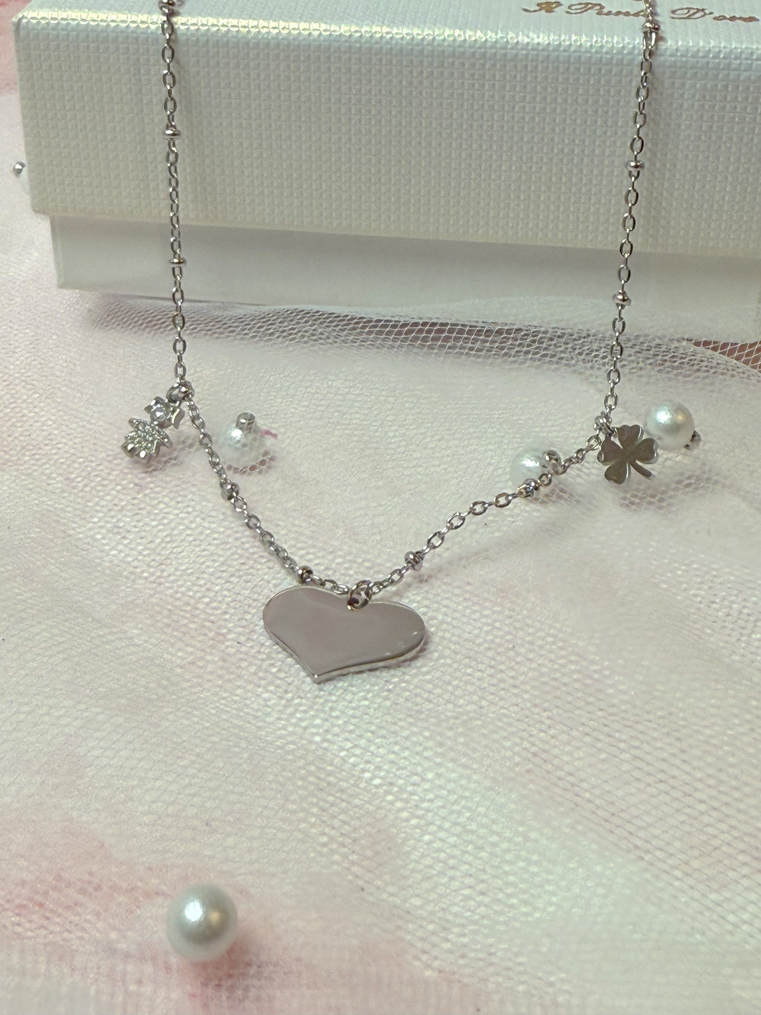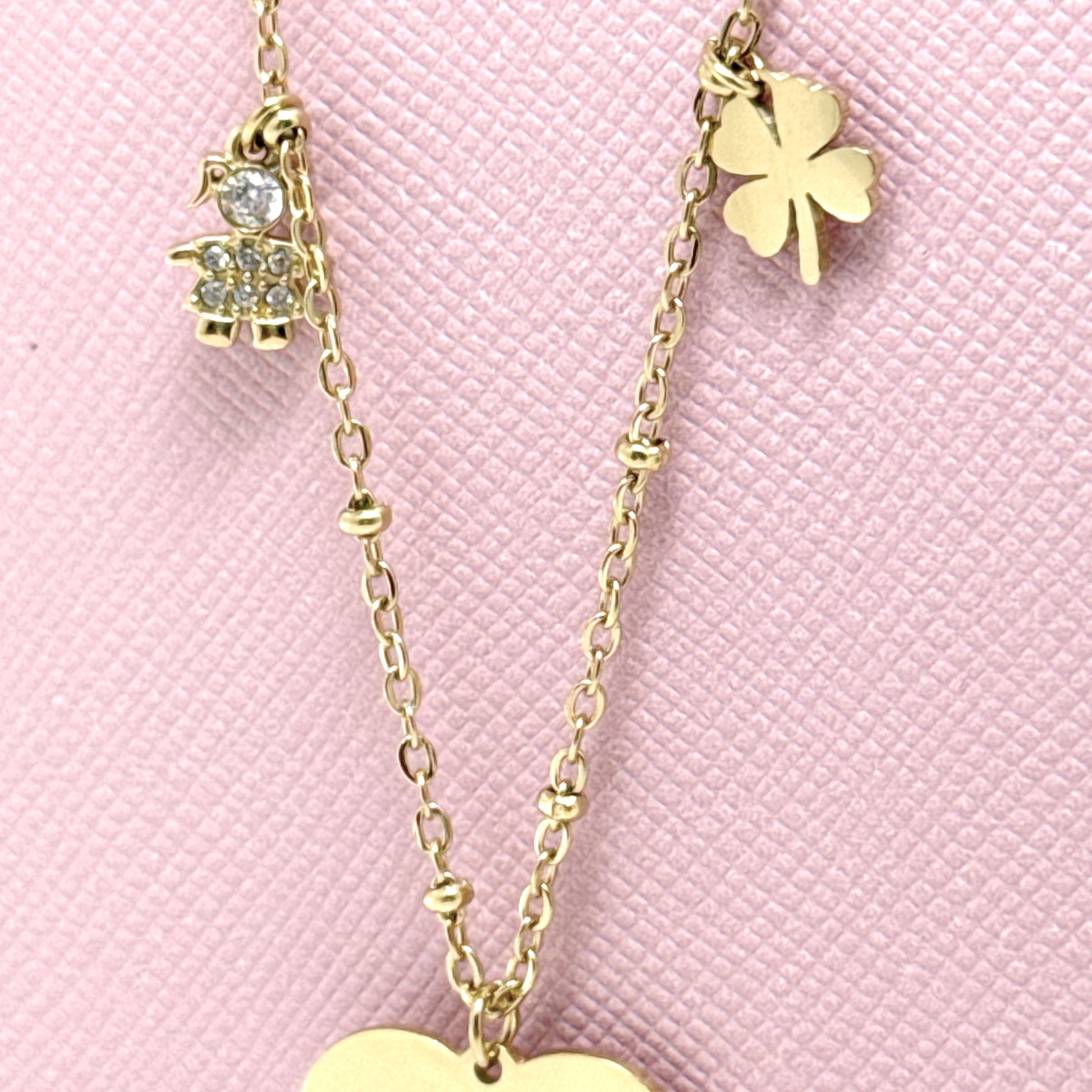 Ottimo regalo per i neo genitori, questa collana in acciaio inossidabile presenta un ciondolo a forma di cuore, decorato da una bambina o un bambino zirconato e un quadrifoglio portafortuna. Personalizza il cuore con il nome o l'iniziale del proprio bambino. Un regalo unico e significativo.