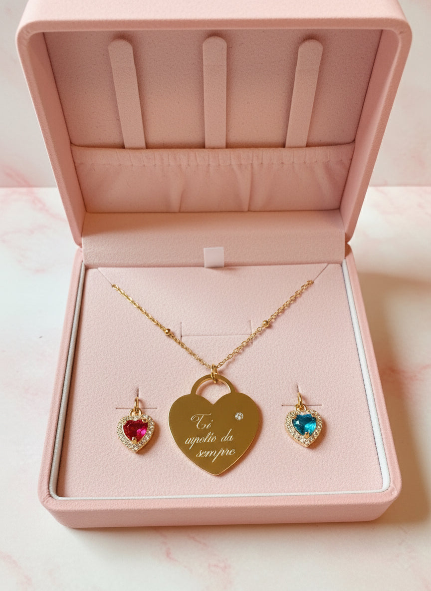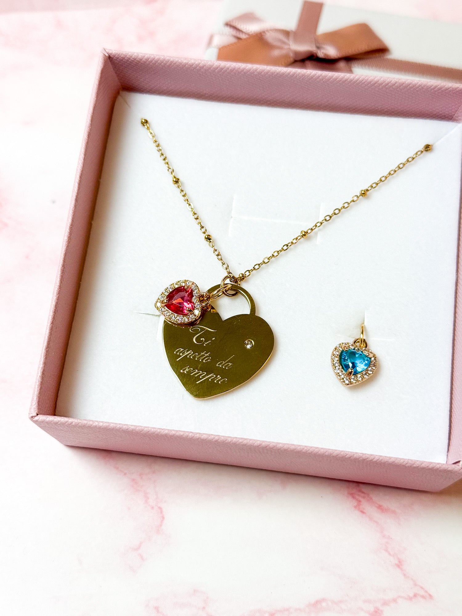 La COLLANA GENDEL REVEAL è un regalo unico e meraviglioso per le neo mamme, che sarà ancora più preziosa nel momento in cui scoprirai il sesso del tuo bambino. Con un cuore personalizzabile e due cuoricini rosa e azzurri inclusi nella scatola, questa collana è ideale per impreziosire il look delle future mamme. Disponibile in oro o argento, potrai anche scegliere di personalizzarla con una medaglia rotonda. Confezionata in un elegante packaging, la spedizione in tutta Italia è rapida.