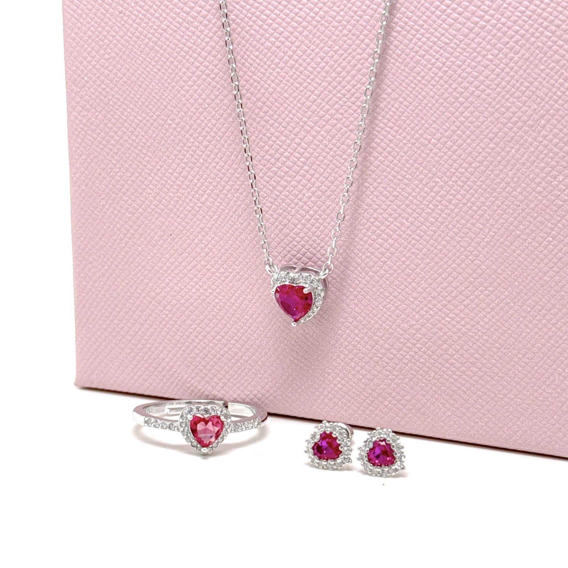 Questa parure cuore zirconato unisce eleganza e raffinatezza con un design curato nei dettagli. La collana presenta un pendente a forma di cuore impreziosito da un brillante bordo di zirconi, mentre gli orecchini e l’anello coordinati richiamano lo stesso motivo colorato e luminoso. Perfetta per esaltare ogni occasione con classe e stile discreto, questa parure è ideale per chi cerca un accessorio sofisticato e d’effetto.