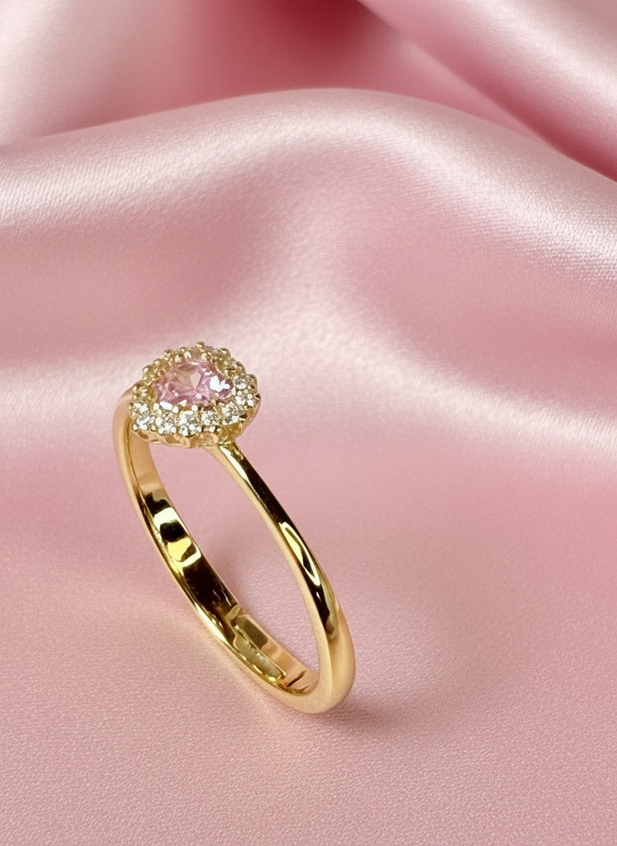 Una deliziosa parure composta da collana, anello e orecchini, tutti caratterizzati da una dolce forma a cuoricino. Ogni pezzo è realizzato con grande cura e attenzione ai dettagli. I cuori, piccoli e delicati, sono adornati al centro da una pietra colorata che aggiunge un tocco di vivacità e personalità. Intorno a ciascun cuoricino, zirconi bianchi scintillano, creando un elegante contrasto che esalta la bellezza della pietra centrale.