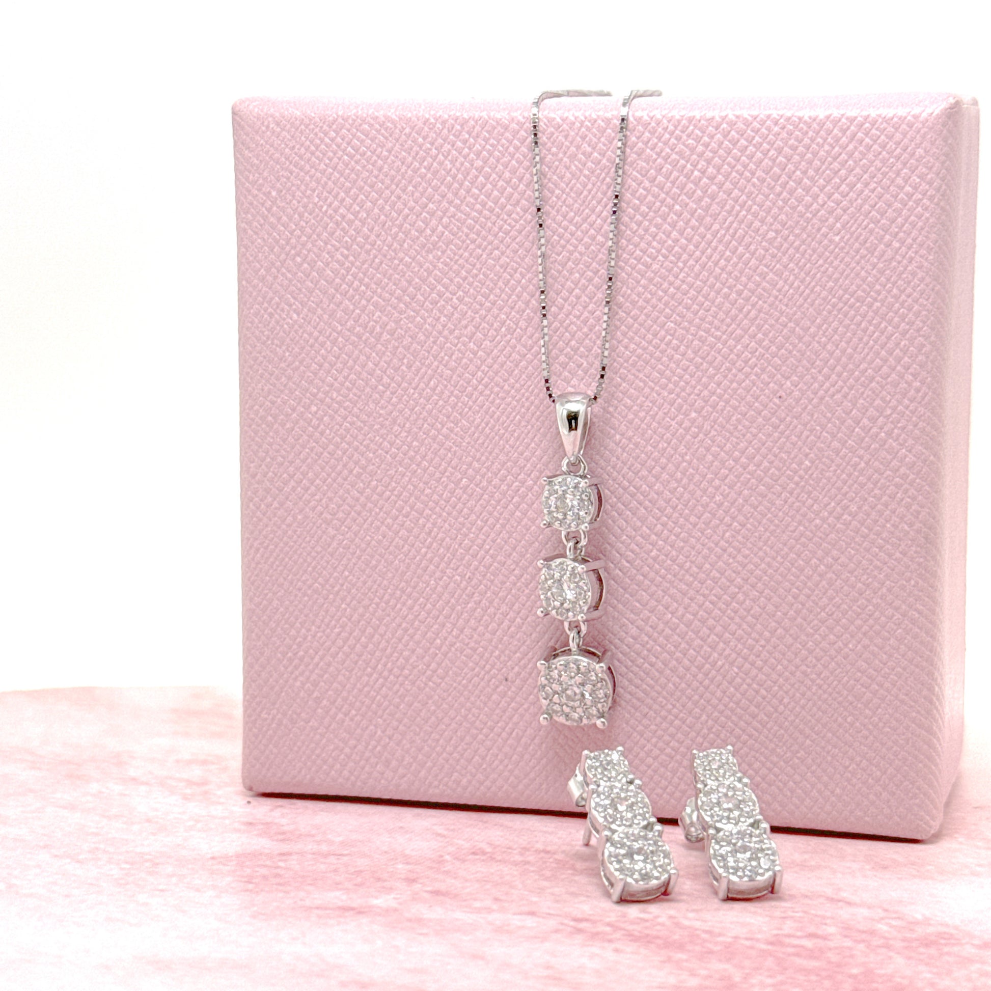 Questa parure in argento 925, elegante e preziosa, è composta da collana, anello e orecchini con incastri a forma di fiori adornati con zirconi scintillanti. Il punto luce di questa parure illuminerà il tuo viso. Ottima da regalare, verrà confezionata nel nostro packaging curioso. Un gioiello di altissima qualità, tutto made in Italy.